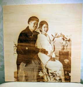 ・オリジナル木製写真(名前日付入り)楯を作成(写真3枚付き)