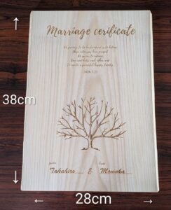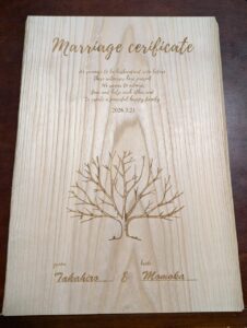 結婚式を考えている方「結婚証明書を木で作れますか」、「記念に残る物を作れますか」、「インスタを見ました」、「ブログを見ました」などお気軽にご相談ください。