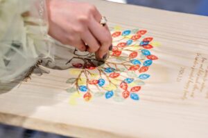 葉っぱ型のスタンプを用意して押印された結婚証明書、素敵なアイデア!!